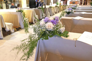 Le composizioni potranno essere utilizzate per adornare i banchi della Chiesa, le balaustre, il banchetto degli sposi, l’ambone e l’altare. Potranno essere posizionate direttamente sui banchi o su delle alzatine dipendendo dal gusto personale.