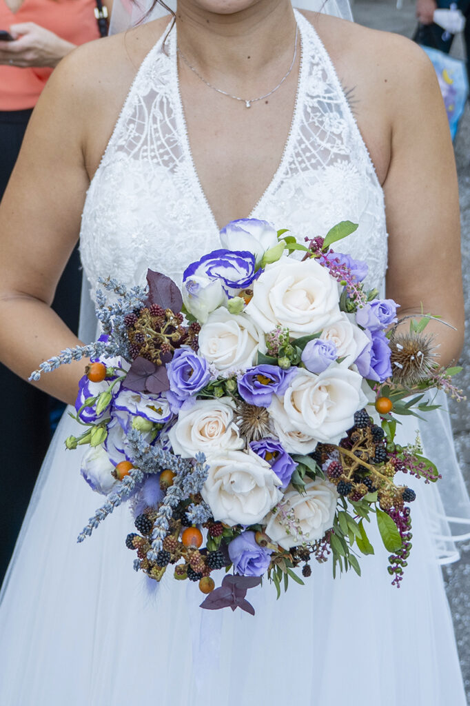 Un bouquet con le sfumature del viola come il lilla o il glicine, è sicuramente un bouquet speciale e particolare che ben si adatta ad un'ambientazione campestre legata alla natura. Arricchito con alcuni elementi vegetativi è l'ideale per chi ha in mente un matrimonio con un'ambientazione bucolica e rustica pur senza rinunciare ad uno stile raffinato.