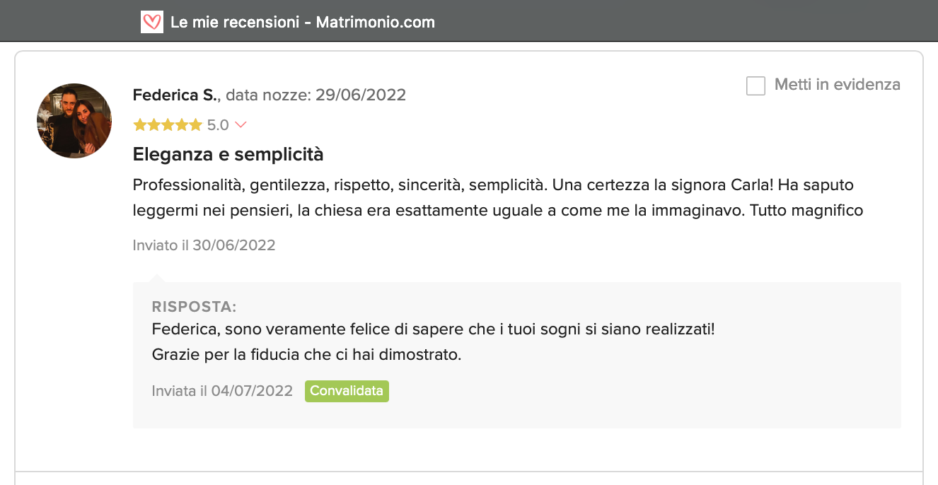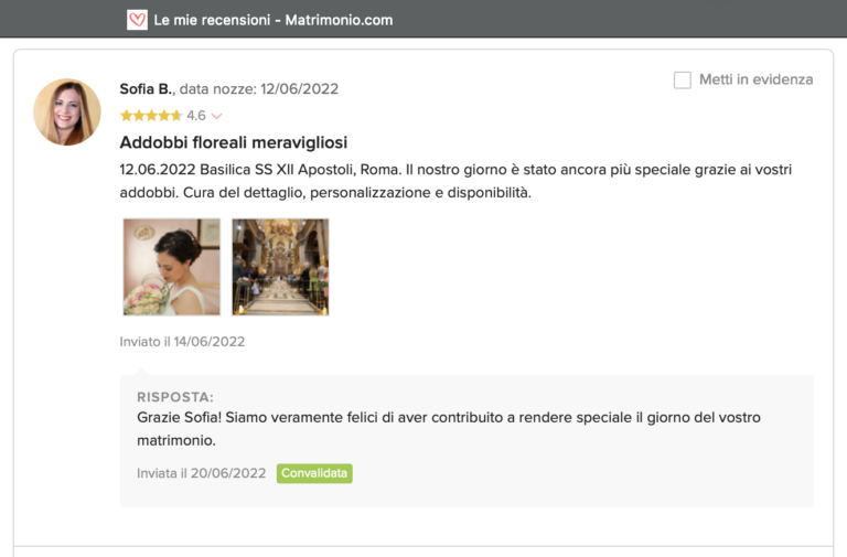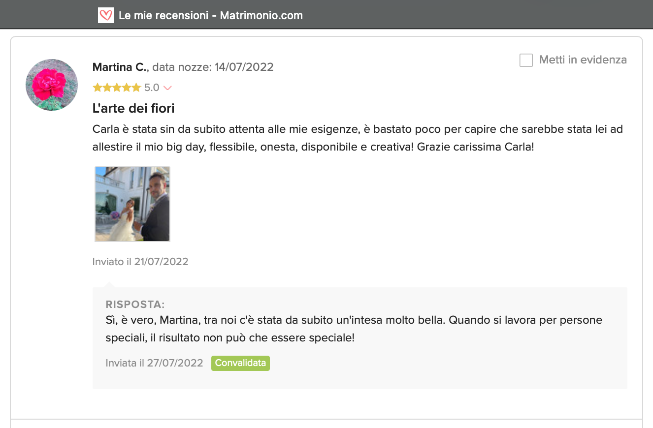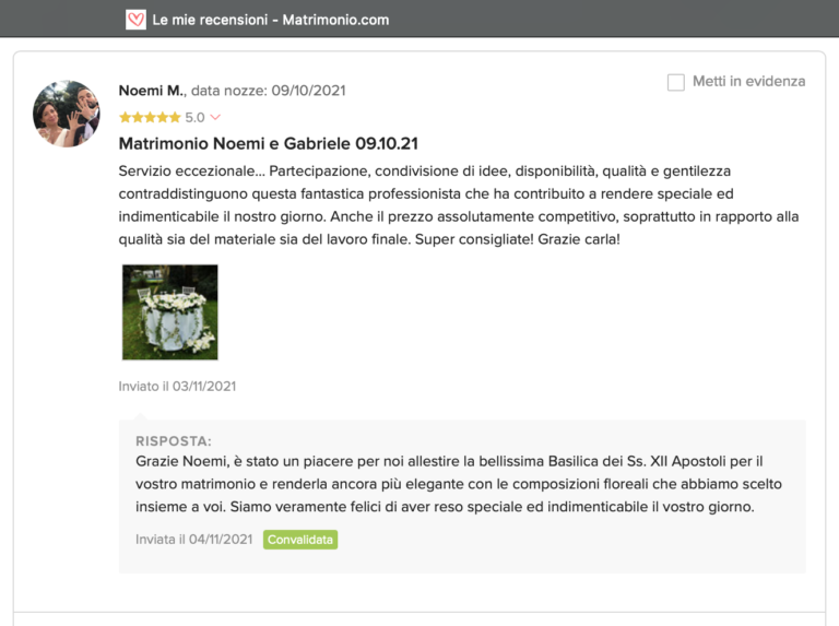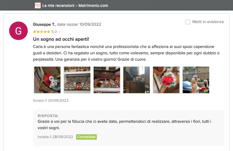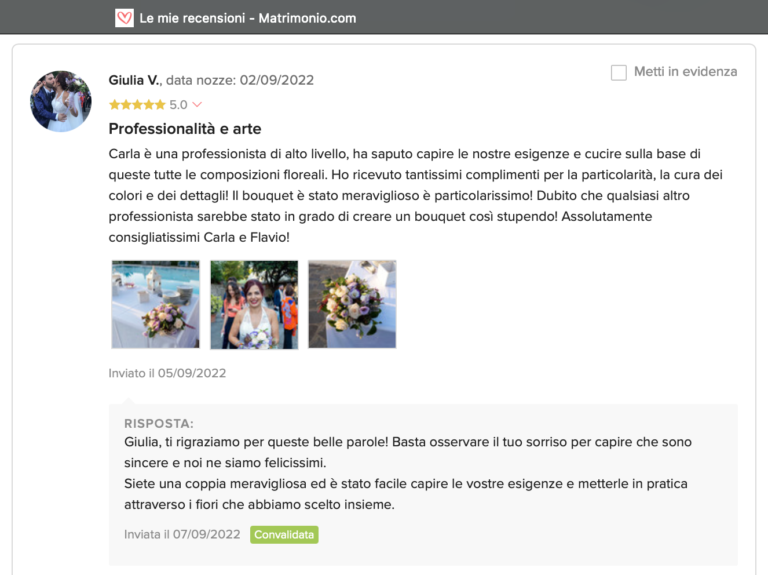 Le nostre recensioni Le recensioni di Fiori con Stile nella pagina di matrimonio.com Ecco le opinioni dei nostri clienti.