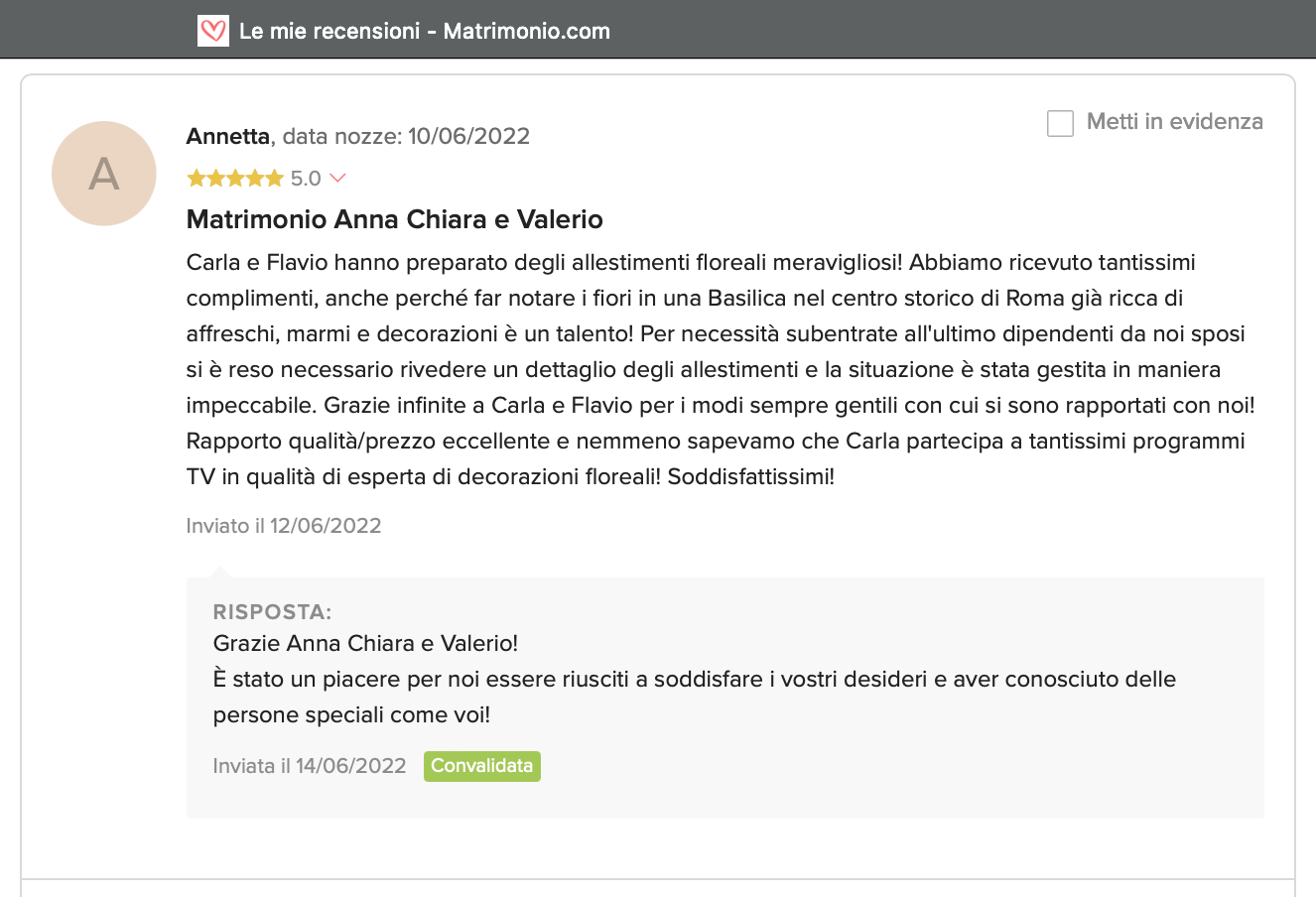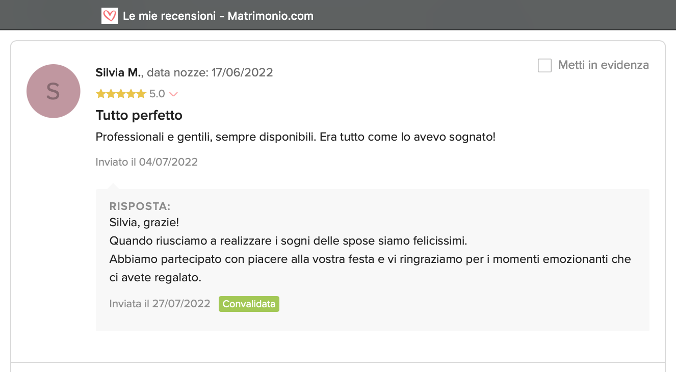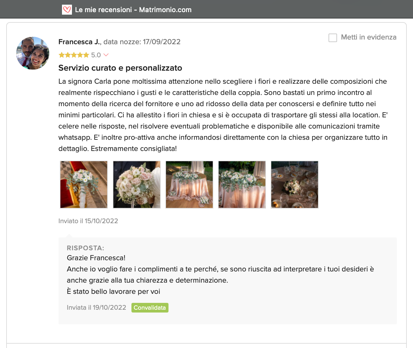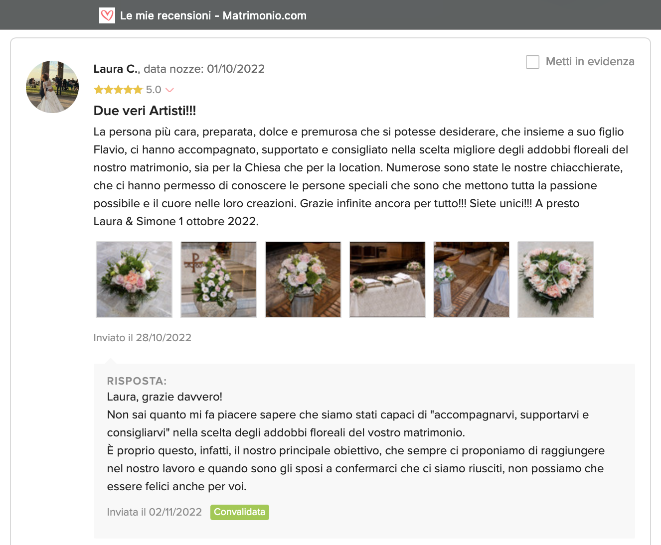Le nostre recensioni Le recensioni di Fiori con Stile nella pagina di matrimonio.com Ecco le opinioni dei nostri clienti.